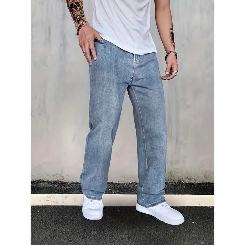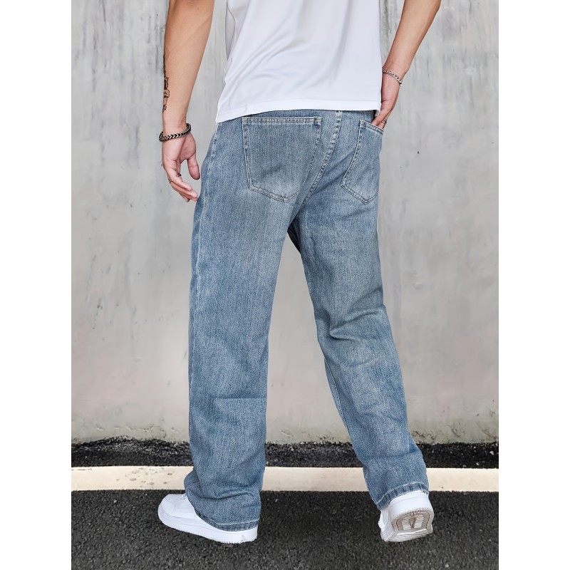 Classic Design Jeans, Men's Casual Street Style Distressed Denim Pants