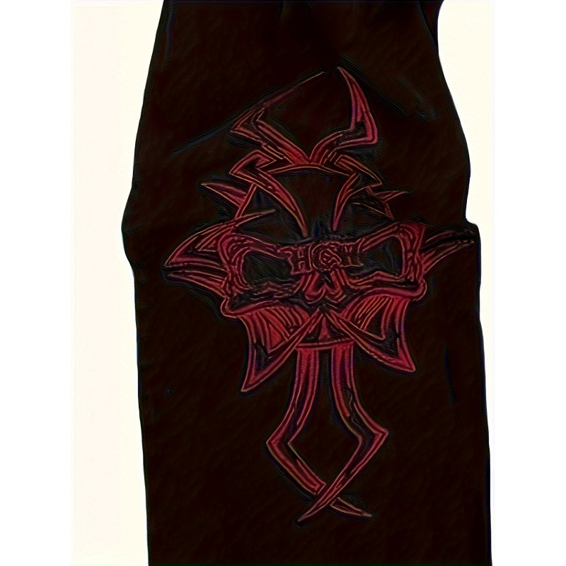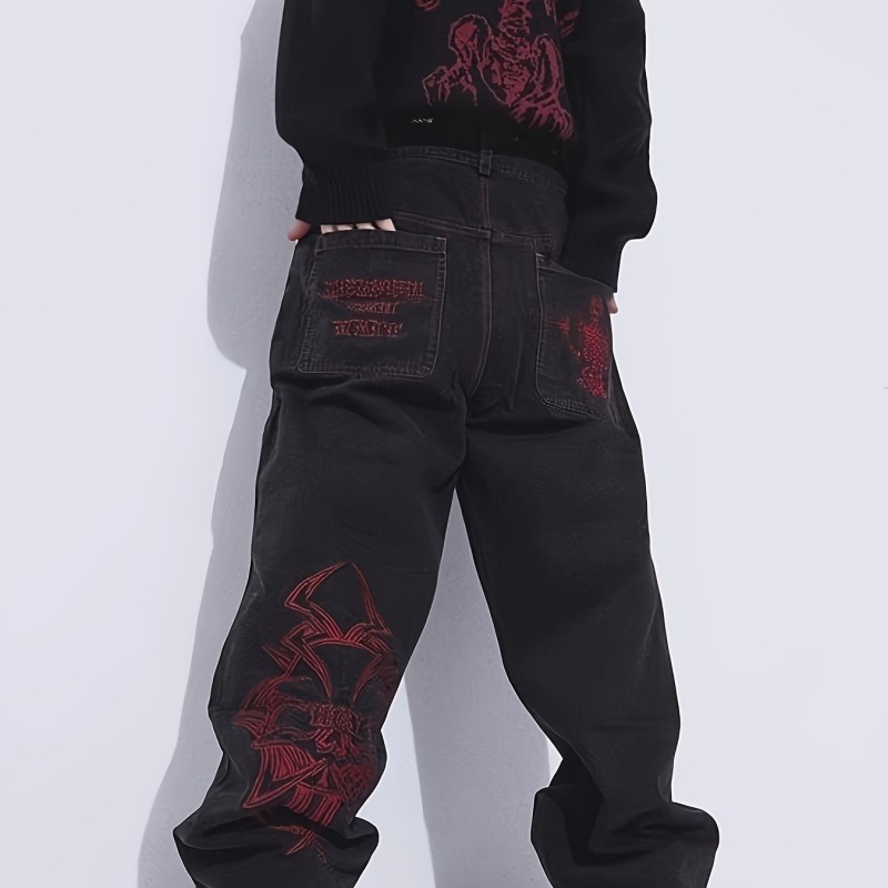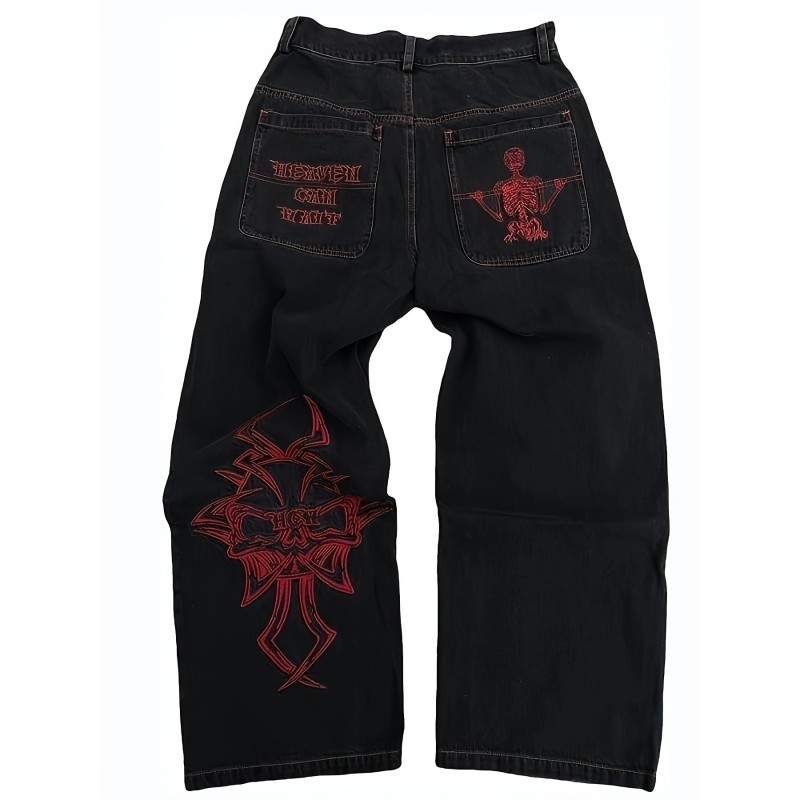 mens skeleton embroidery jeans casual street style loose fit jeans halloween gift details 1