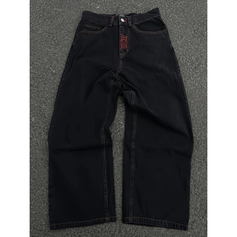 mens skeleton embroidery jeans casual street style loose fit jeans halloween gift details 14