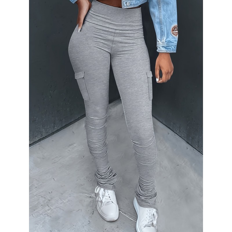 solid high waist pants elegant skinny pants with pockets womens clothing details 7