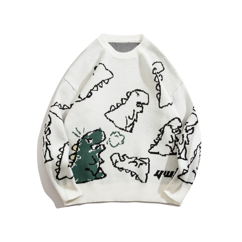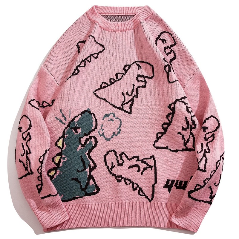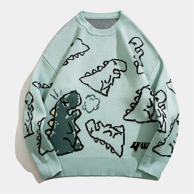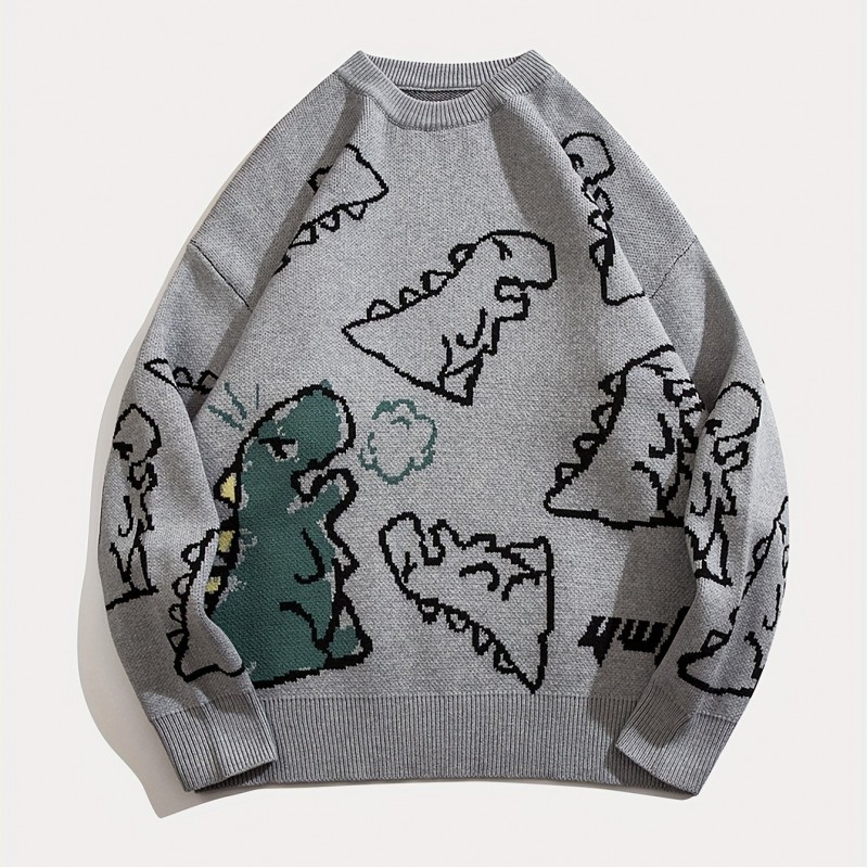 cartoon dinosaur pattern knitted sweater mens casual warm slightly stretch crew neck pullover sweater for men fall winter details 1