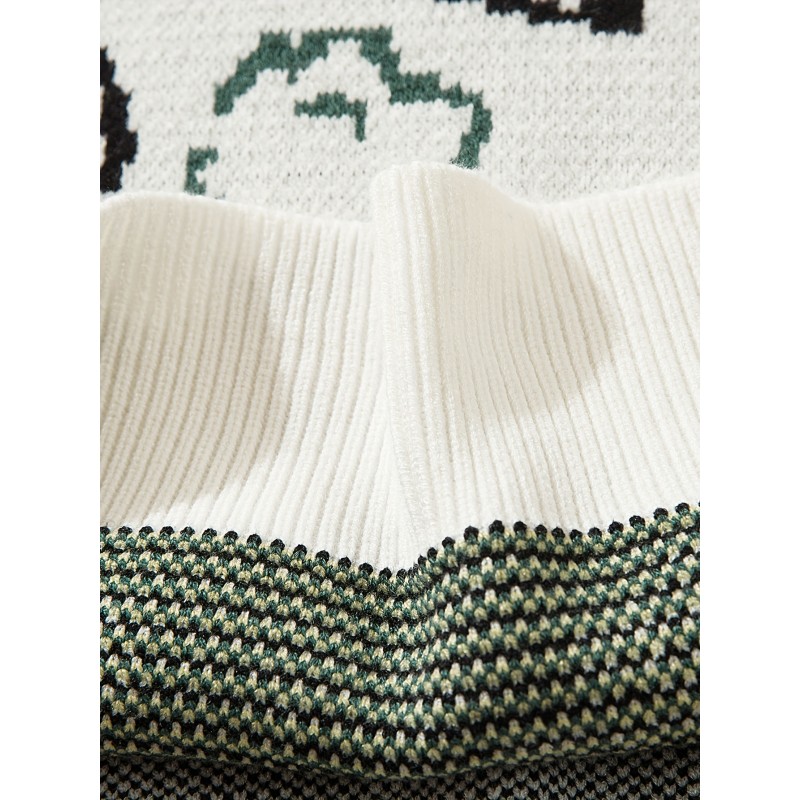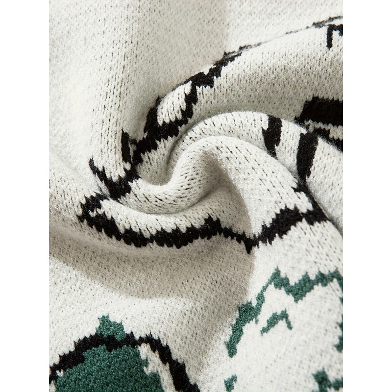 cartoon dinosaur pattern knitted sweater mens casual warm slightly stretch crew neck pullover sweater for men fall winter details 3