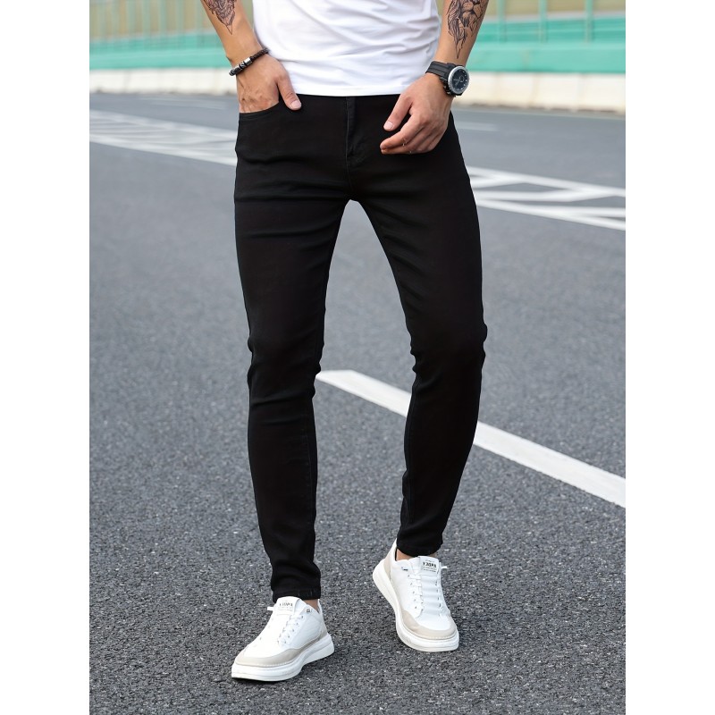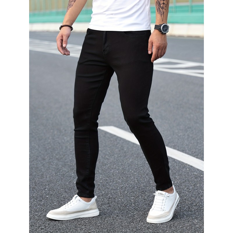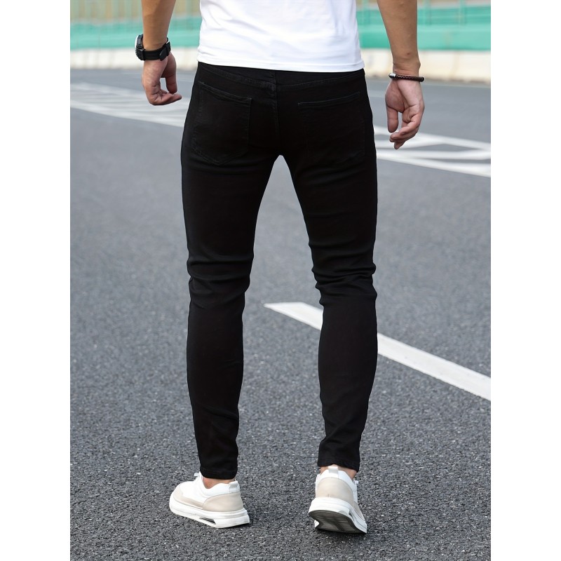 Chic Skinny Jeans, Men's Casual Street Style Distressed Stretch Denim Pants