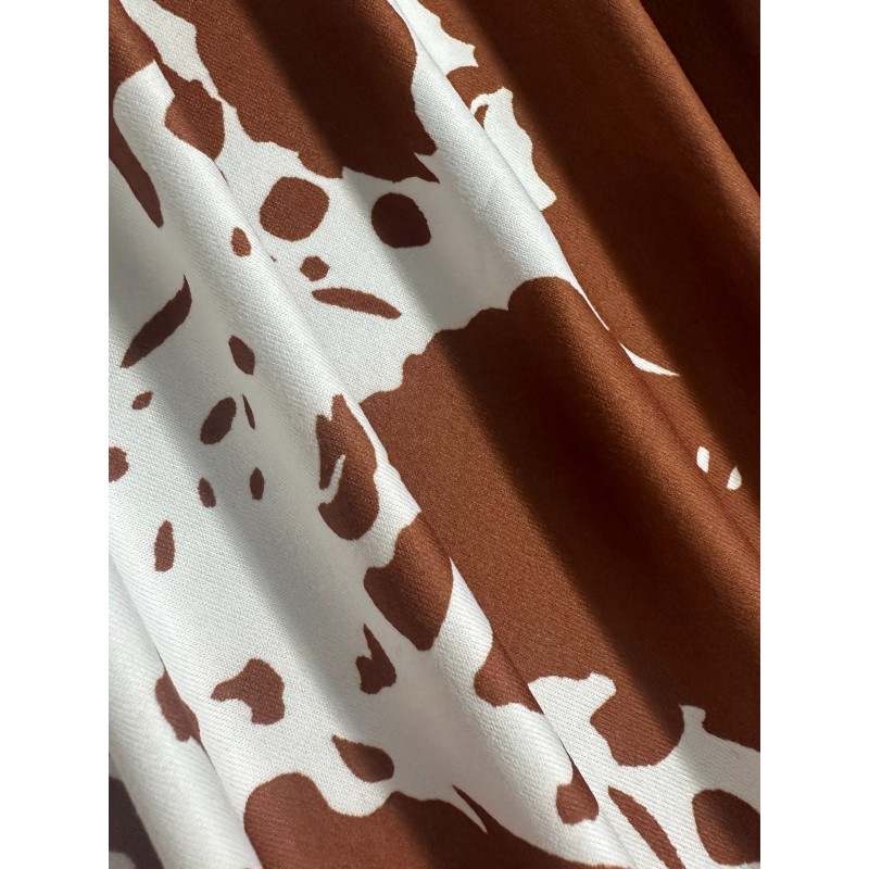 cow print flare leg ankle pants elegant elastic waist slim pants womens clothing details 0