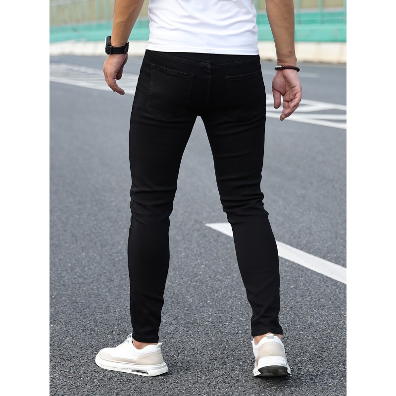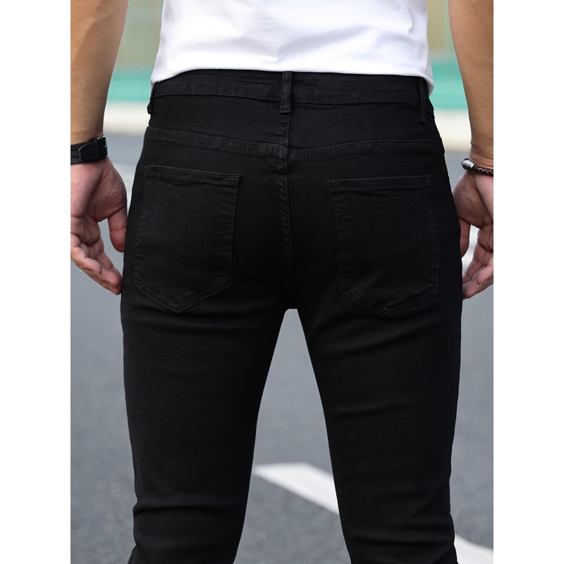 Men's Classic Design Skinny Jeans, Men's Casual Street Style Stretch Jeans