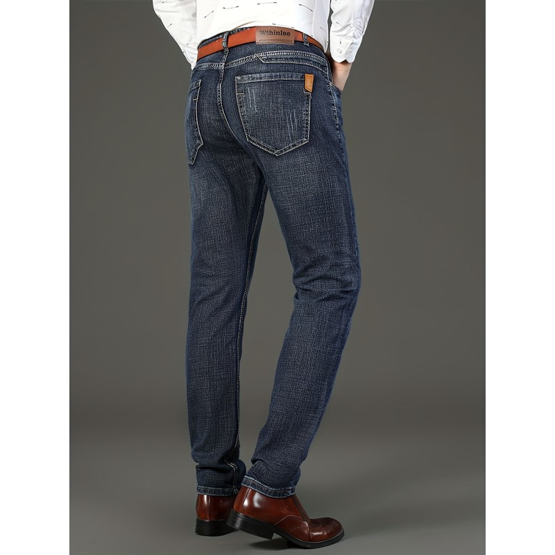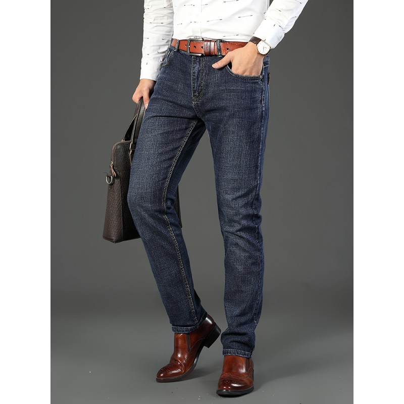 mens classic vintage solid jeans slightly stretch comfy casual pants for mens outdoor wearing details 0