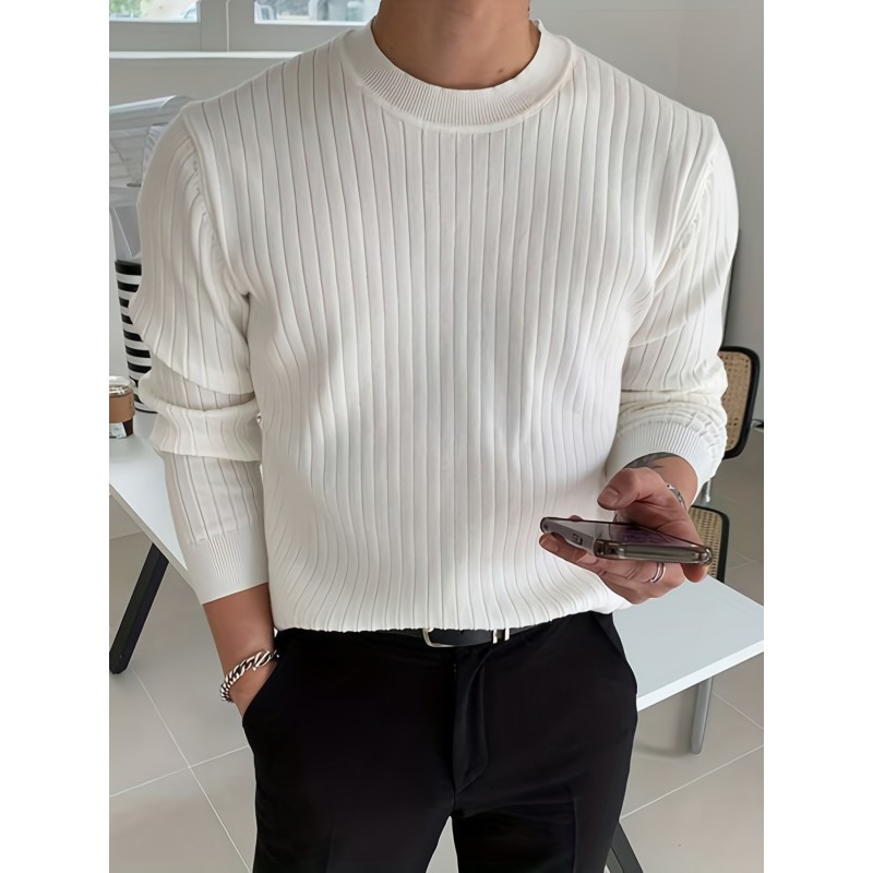 mens fashion long sleeve solid knitted sweater mens pullover for autumn winter details 3