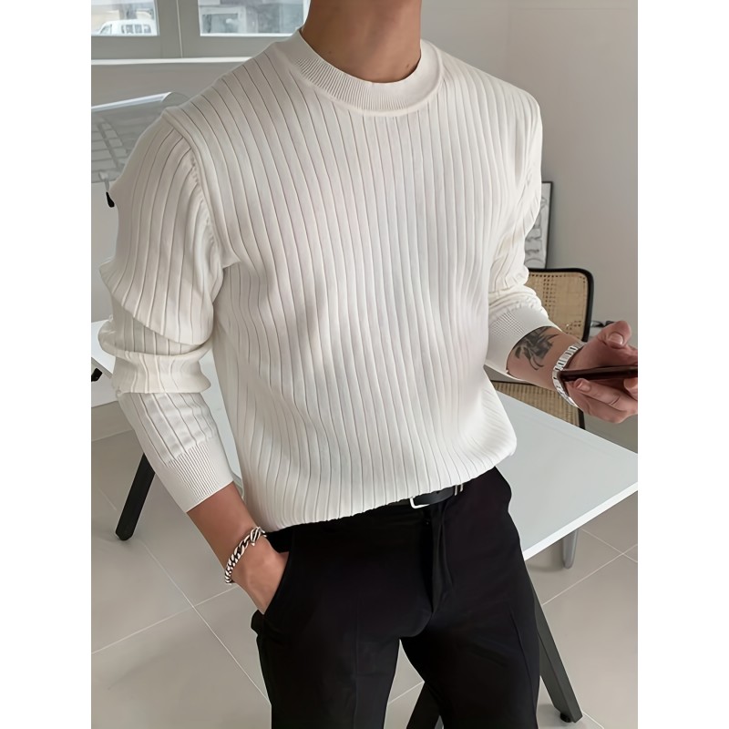 Men's Fashion Long Sleeve Solid Knitted Sweater, Men's Pullover For Autumn Winter