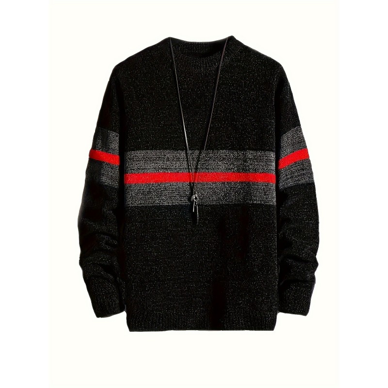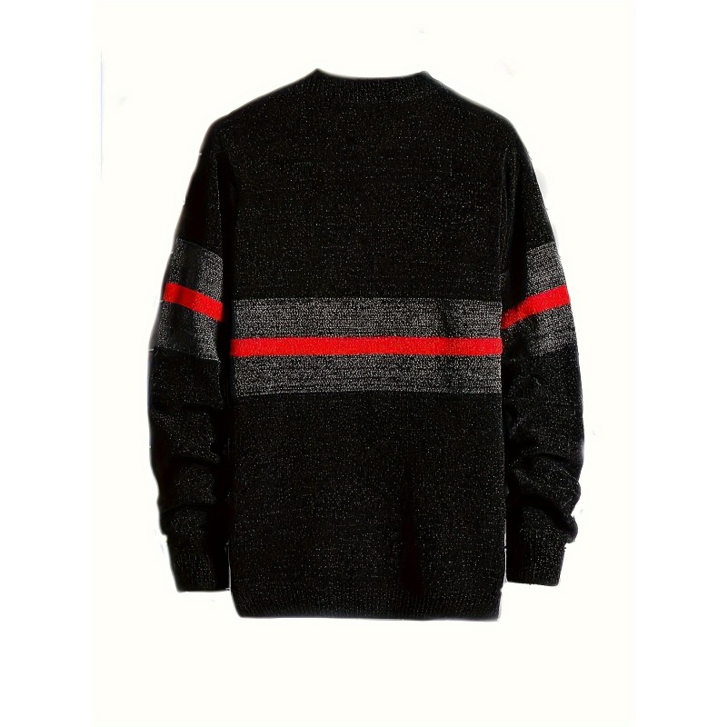 Men's Stylish Stripe Pattern Knitted Pullover, Casual Breathable Long Sleeve Crew Neck Top For City Walk Street Hanging Outdoor Activities
