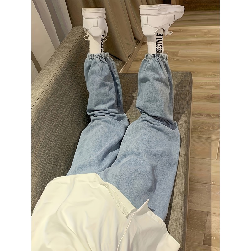 mens vintage denim jeans casual streetwear slightly stretch breathable loose joggers for outdoor spring fall details 0