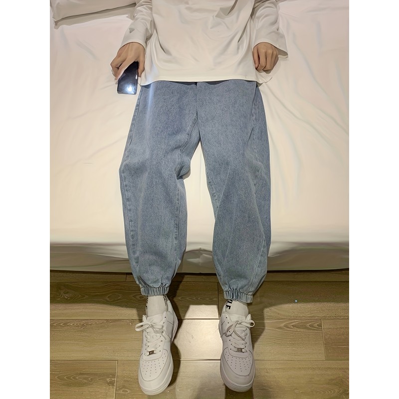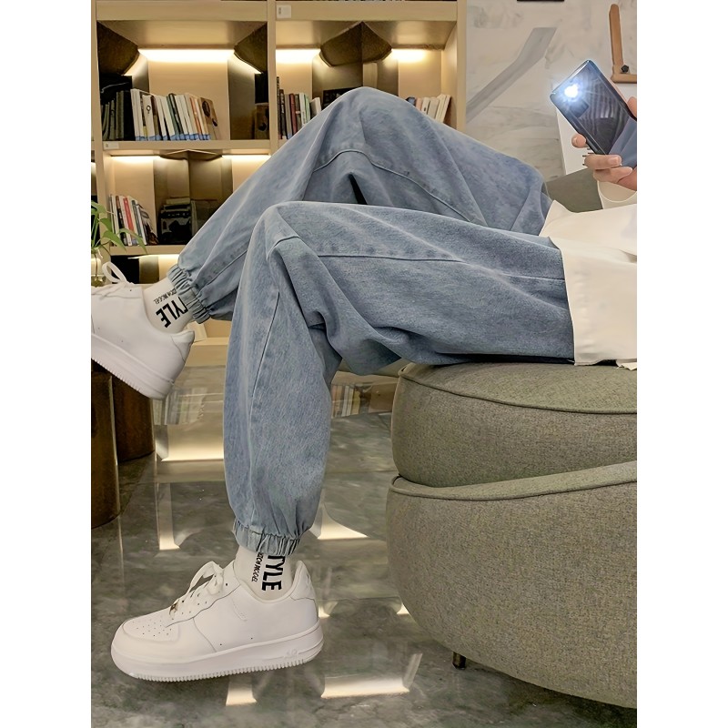 mens vintage denim jeans casual streetwear slightly stretch breathable loose joggers for outdoor spring fall details 1