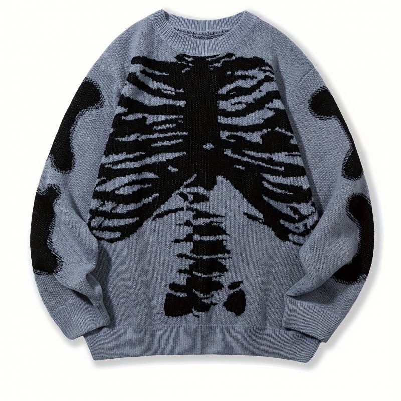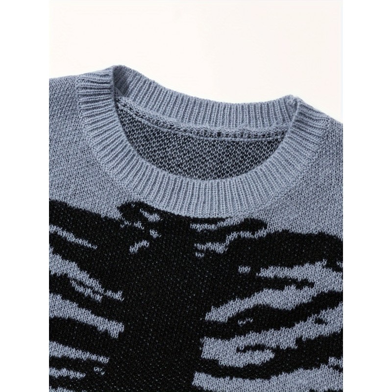 skeleton pattern knitted sweater mens casual warm mid stretch crew neck pullover sweater for men fall winter details 1