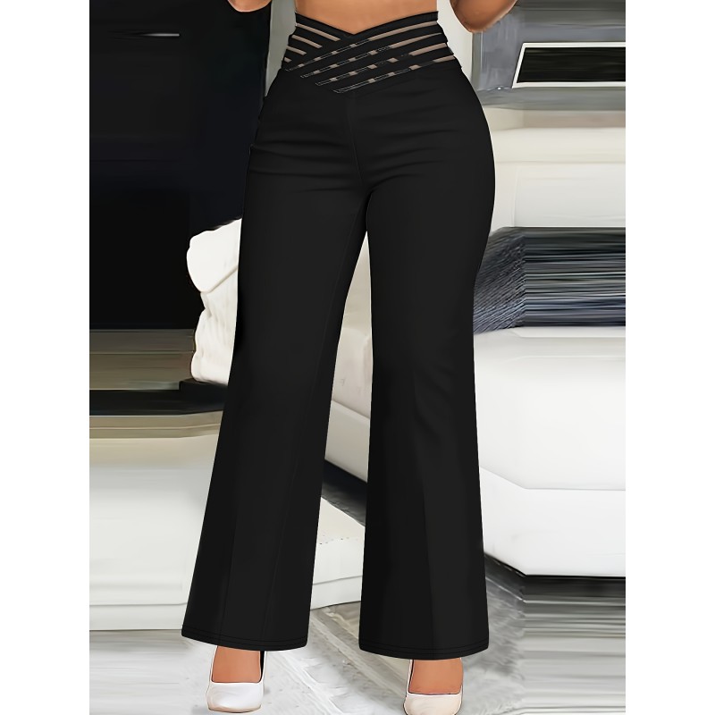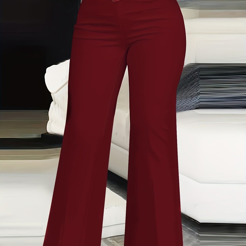 Solid Color Bootcut Pants, Elegant High Waist Pants, Women's Clothing