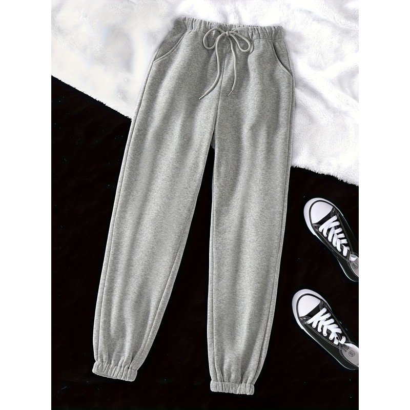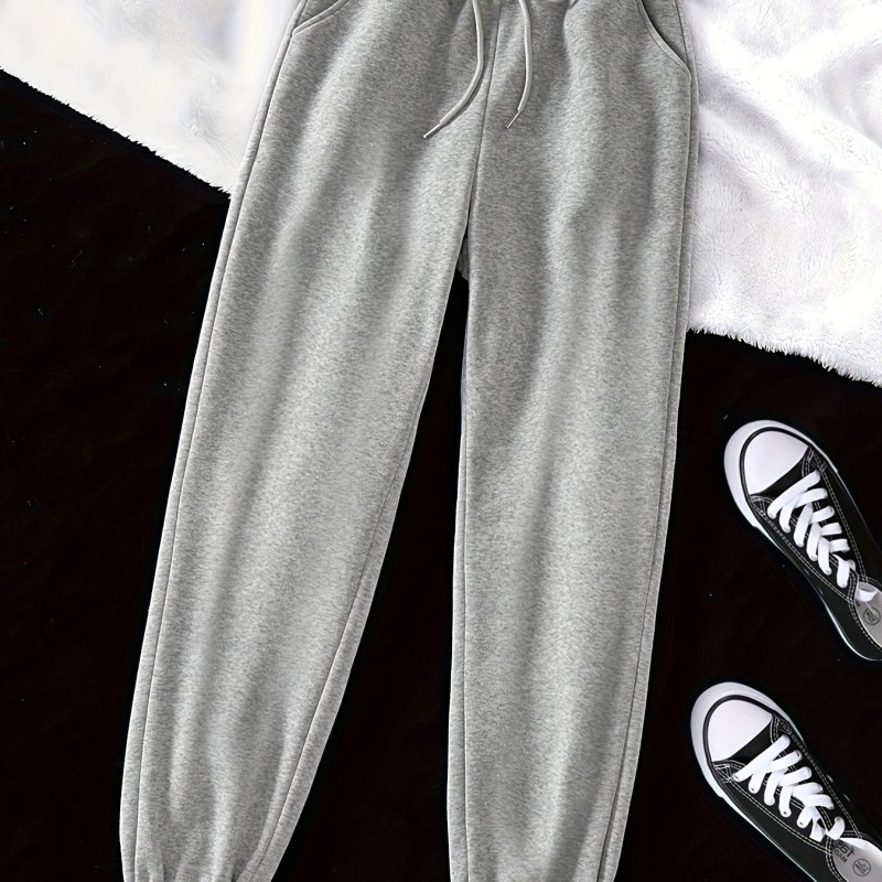 Solid Drawstring Pocket Joggers, Casual Elastic Waist Pants, Women's Clothing