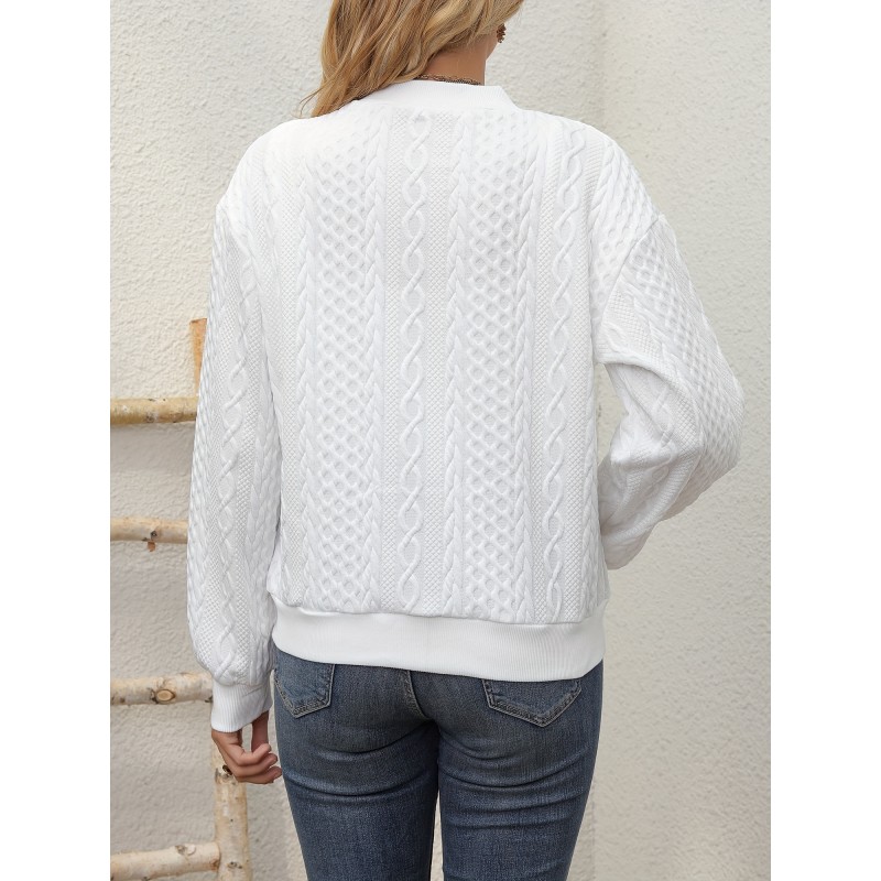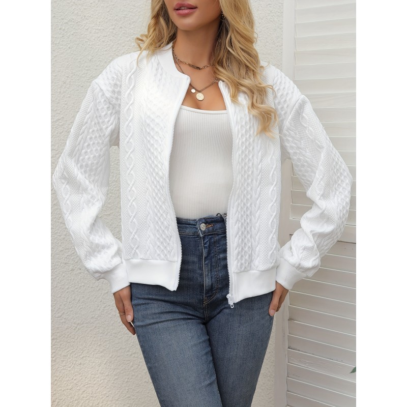 Textured Solid Bomber Jacket, Casual Zip Up Long Sleeve Outerwear, Women's Clothing